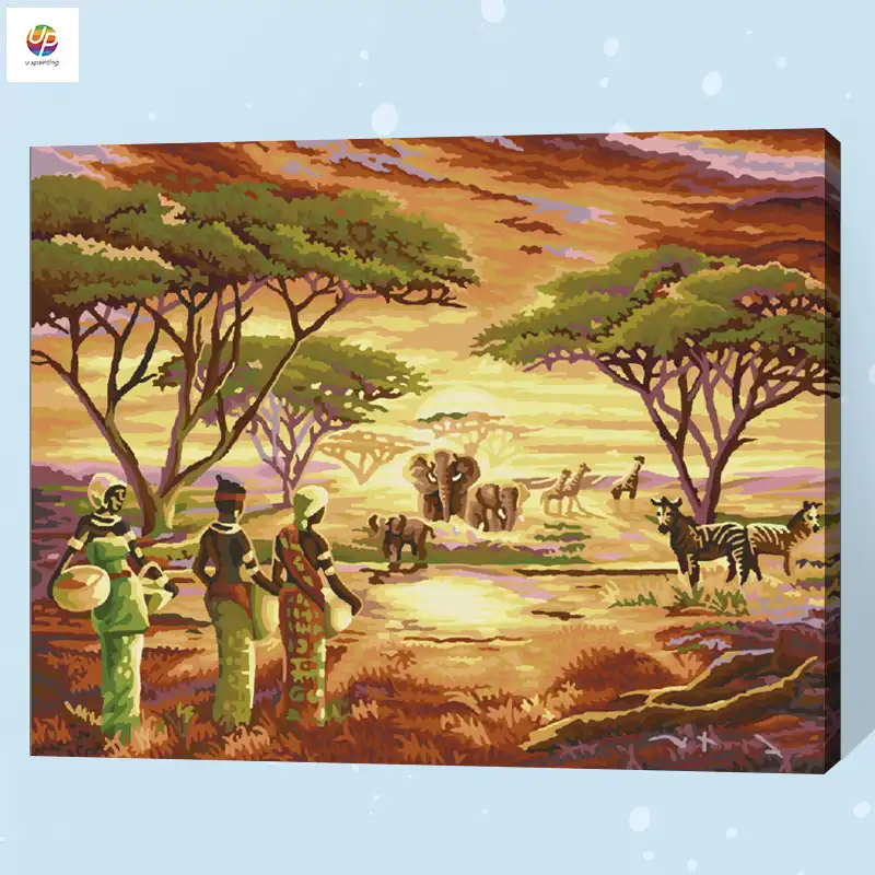 Giraffe Zebra Africa Scenery Frameless Digital Painting By Number