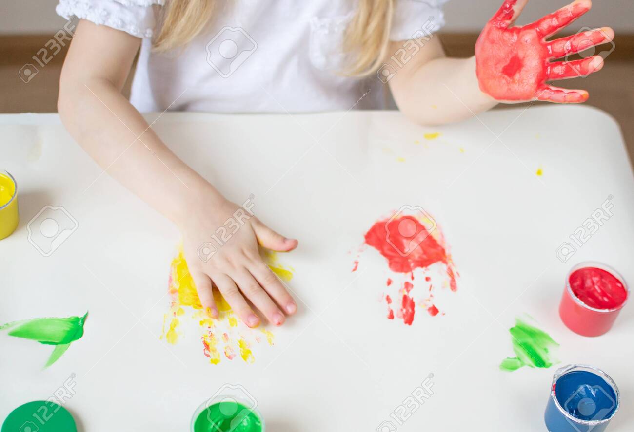Close Up Of Kid S Hand Painting A Picture At Preschool Art Club