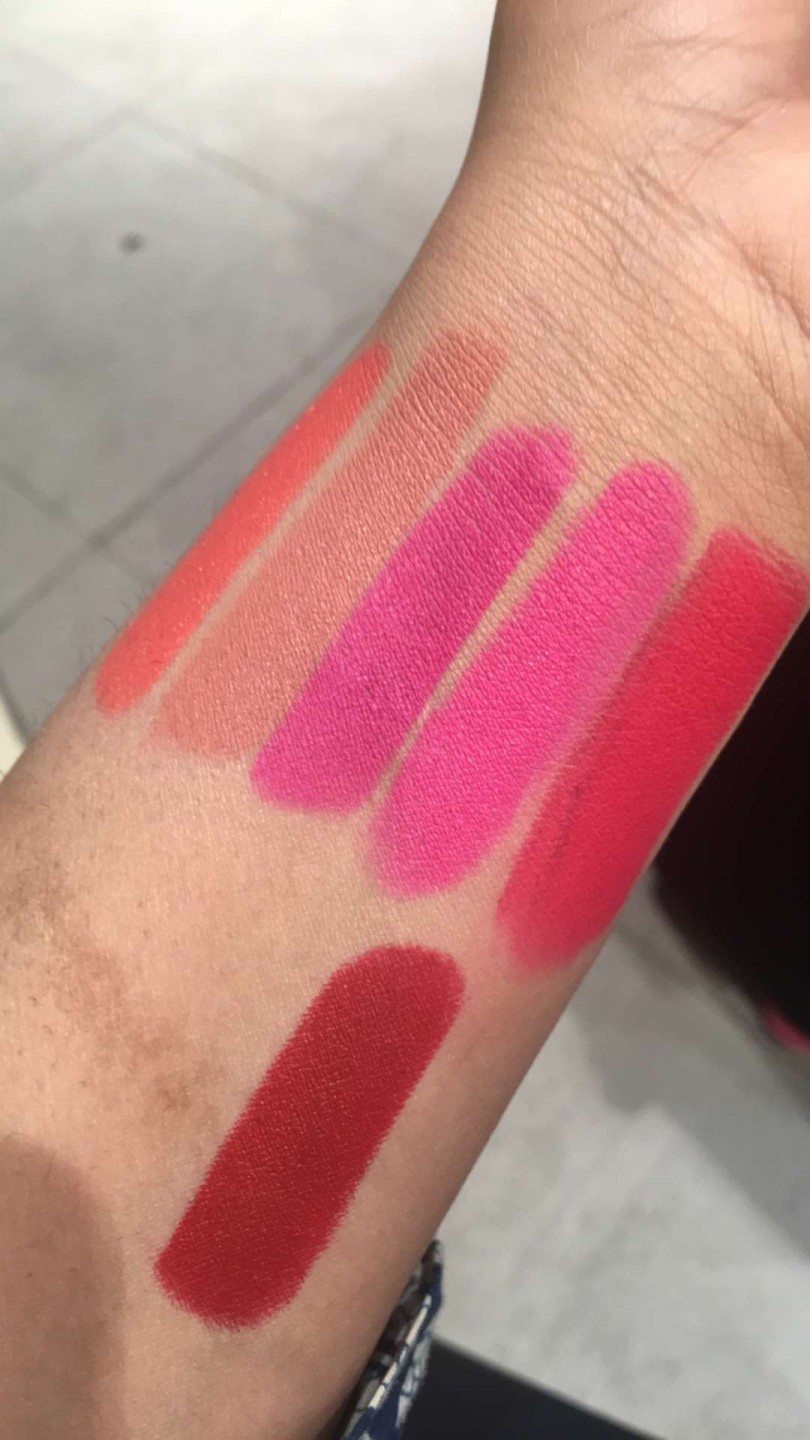 Excellent color payoff with medium to high frosted shimmer and shine finish. This matte blue red has dominated the red lipstick market for years but its formula errs on the drying side. Purplish reds wines and berry colors.
